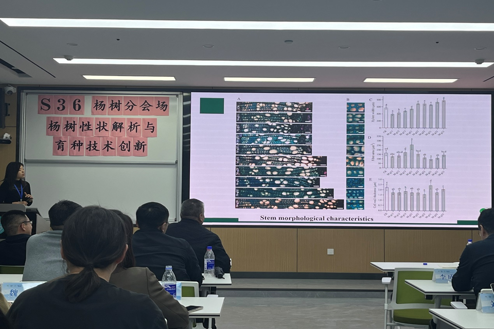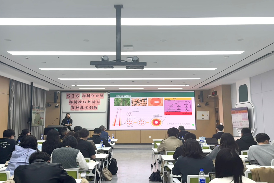 tyc234cc太阳成集团刘福妹副教授参加此次会议,并在以“杨树性状解析与育种技术创新”为主题的杨树分会场做了题为《杨树PdCSD2基因对形成层和木材发育的影响及重离子辐射杨树突变体库的初步构建》的报告,获得相关专家的一致好评。