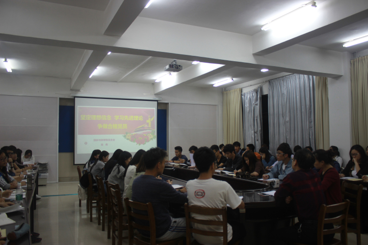 本次党课培训围绕“坚定理想信念,学习先进理论,争做合格党员”展开,以端正入党积极分子和发展对象的入党动机、增强学生党员对国家建设的信心为目的。会上,肖伟重点从坚定共产主义信仰、学习先进理论、学做结合三方面向大家进行讲述,要求大家端正入党动机,了解党的基本知识,做一名合格的党员。随后,肖伟带领大家一起回顾了党的建设与成长发展历程,并结合“大跃进”、“改革开放”等历史事件加深同学们对党的更深层次的认识,并向大家简单阐述了“三严三实”“两学一做”的基本内涵。最后,肖伟向积极分子与发展对象提出要求,他强调积极分子和发展对象要在同学们中起到模范带头作用,并且要端正思想观念、严格遵守党的纪律与章程。