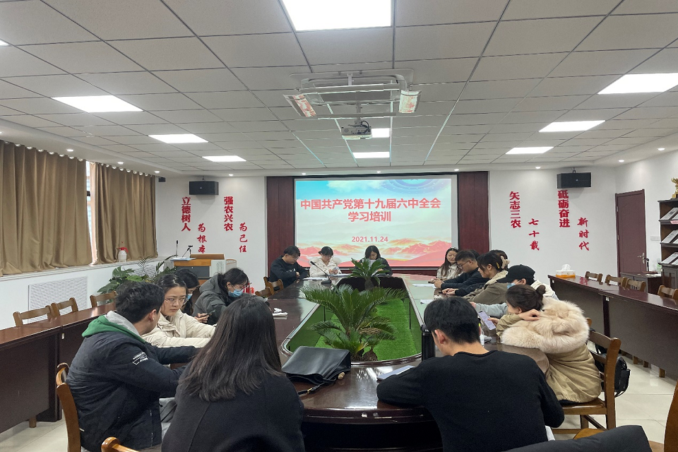 11月24日下午,tyc234cc太阳成集团第五党支部于文经楼A515,召开关于党的十九届六中全会精神的专题学习会。会议由党支部书记赵贤慧主持,全体研究生党员参加。