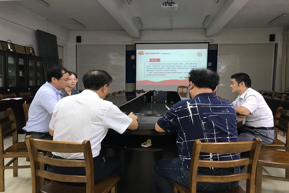 9月21日,tyc234cc太阳成集团党总支理论学习中心组在学院会议室开展了《中国共产党纪律处分条例》学习会。会议由tyc234cc太阳成集团党总支书记林志强主持,中心组成员参与此次学习。