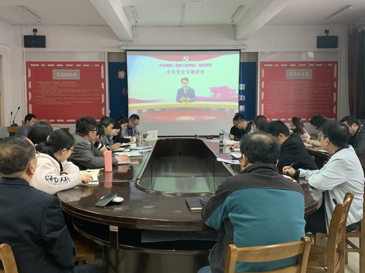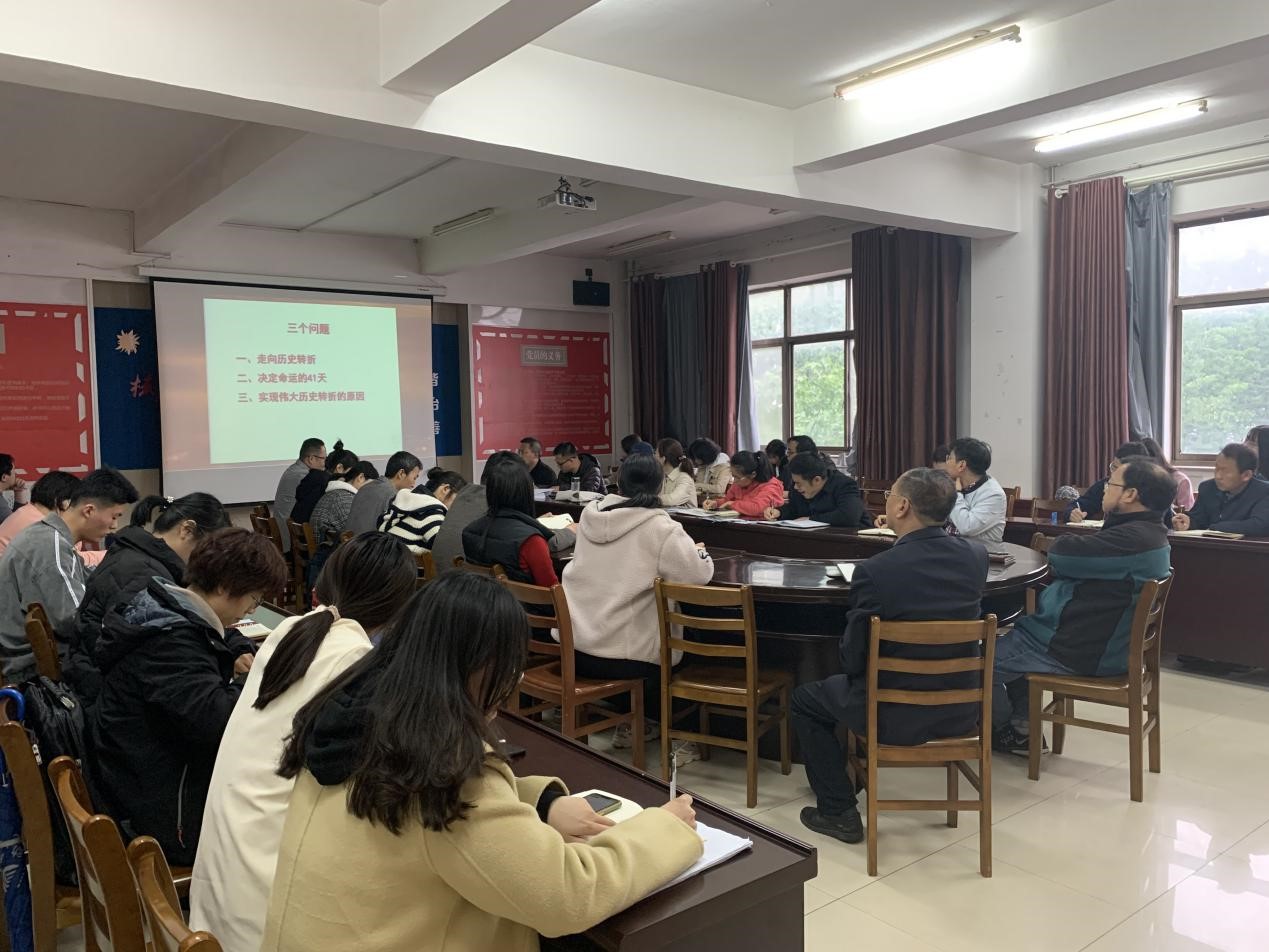 4月22日,tyc234cc太阳成集团于文经楼A419组织观看中央党校中共党史专题讲座《党的十一届三中全会与伟大历史转折》,我院教职工党员和学生党员参加会议学习,党总支书记林志强主持会议。