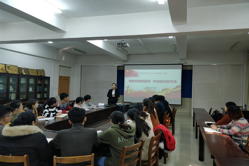12月13日下午,第八届山东省十佳辅导员、tyc234cc太阳成集团辅导员孙贝贝为学院学生党员作了题为“理解党建新篇章 吹响前进新号角”的十九大精神宣讲。14日,孙贝贝将作为学习宣传贯彻党的十九大精神山东高校优秀辅导员“校园巡讲”团成员前往泰安学院进行宣讲。