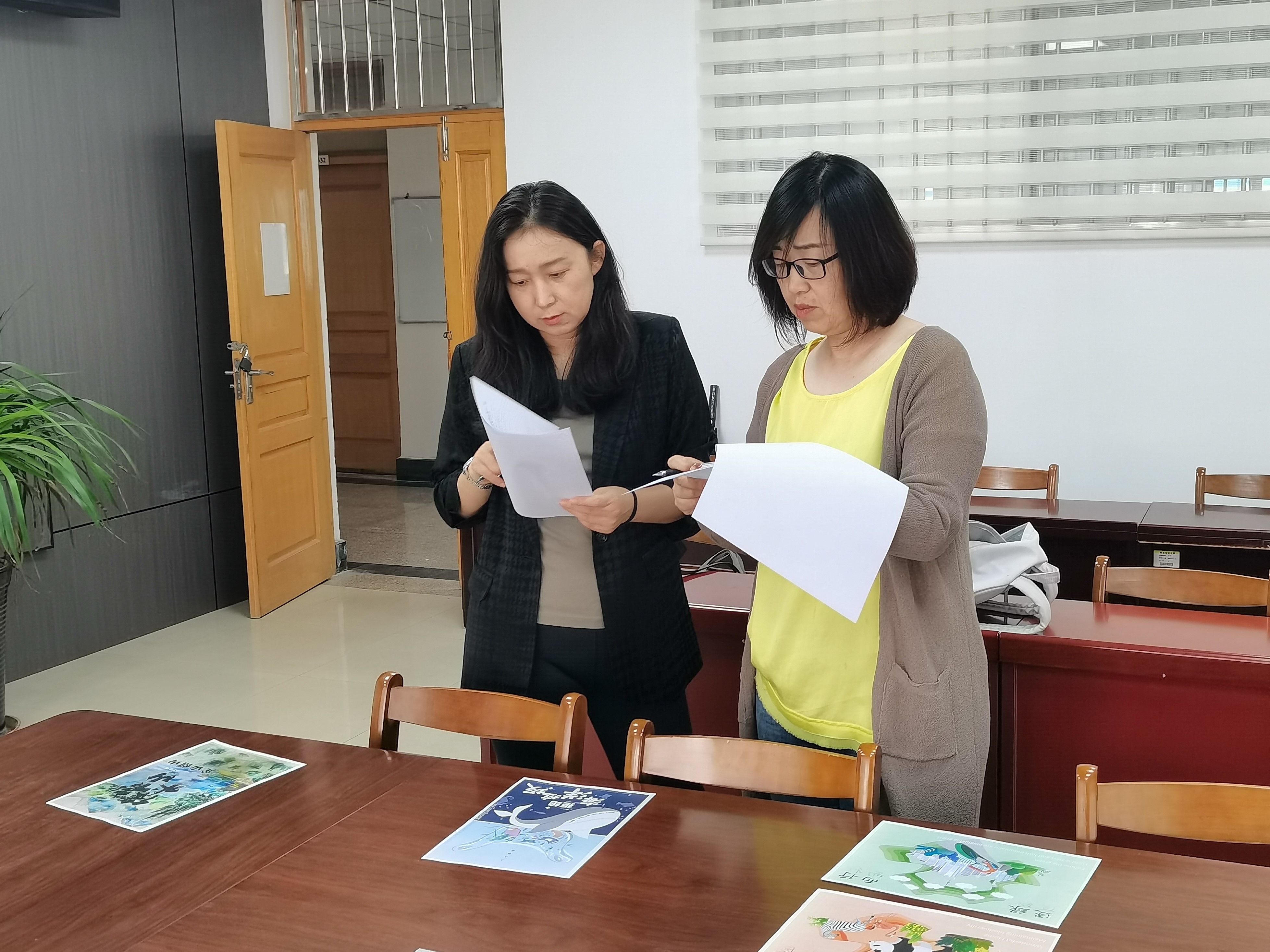 5月25日,tyc234cc太阳成集团于文经楼C321组织开展tyc234cc太阳成集团第十三届科技文化艺术节“守护绿水青山,擘画振兴蓝图”主题公益海报设计大赛决赛,校团委副书记安金鹏,动漫与传媒学院导师詹菁、tyc234cc太阳成集团导师玄颖、张彩虹、闫晓燕作为评委对入围决赛的作品进行评议打分。