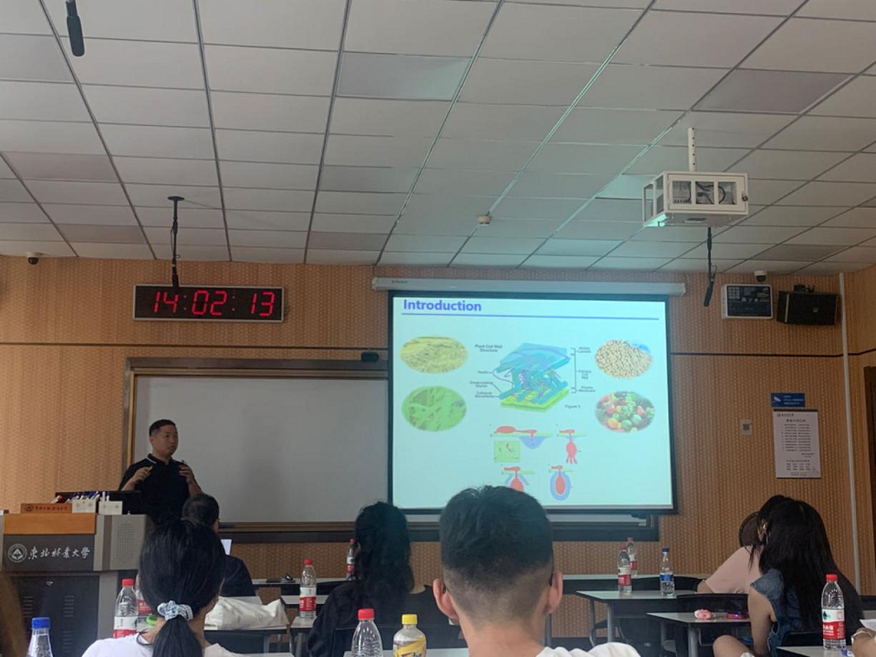 周功克教授团队6名成员报名参会,并进行了5场报告。其中周功克教授在S28盐碱地分会场担任主持人并进行了题为《耐盐饲用芒草产业关键技术研究》的特邀报告;唐贤丰教授和王殿副教授在S38青年科学家分会场分别进行了题为《蛋白泛素化修饰调控林木形成层干细胞发育研究》和《杨树BR合成基因CPD1的转录后调控机制对木材发育的影响》的报告;王丛鹏副教授在S12林草基础生物学分会场进行了题为《BR信号通路调控杨树木材发育的分子机制研究》的报告;孟杰副教授在S25经济林分会场进行了题为《银杏类黄酮和银杏酸的代谢分析及其生物合成研究》的报告。5场报告均取得了极大的反响,报告人与与会同行进行了热烈的讨论。