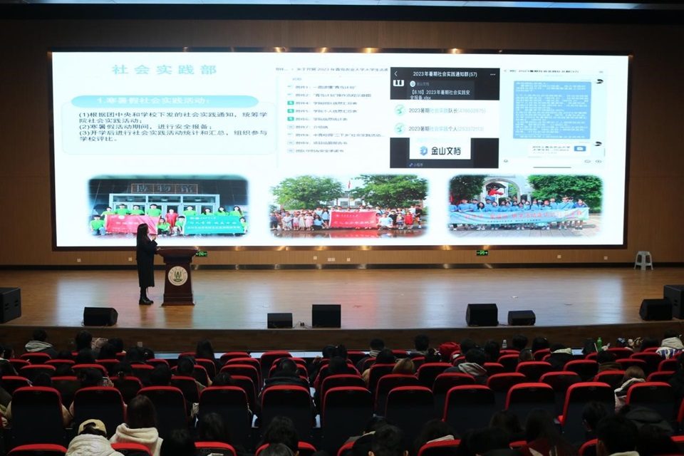 11月19日上午,tyc234cc太阳成集团于在平度校区创业中心报告厅举行2023届学生会与学生事务部交流会,学院全体学生干部参会,会议由学生会主席郭轩成主持。