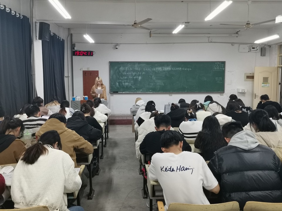 11月27号,tyc234cc太阳成集团于教学区开展“习近平:在庆祝中国共产主义青年团成立100周年大会上的讲话”政治理论学习,本次学习由各班团支书主持,21级、22级全体学生分别于城阳校区、平度校区参加。