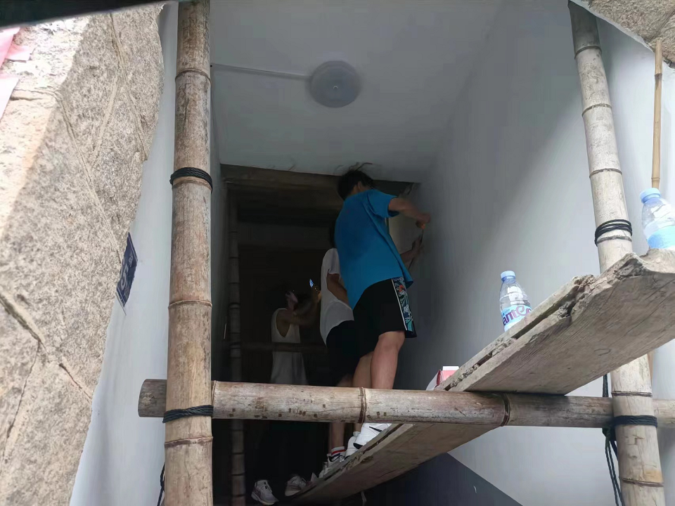 绘制期间,不仅仅是绘画组队员们忙碌,其余队员们也各司其职,发挥特长。扛起相机拍摄绘制过程、乡村风景;走进村子开展街头采访,了解更多文化背景和村民感受;为村子进行景观设计,赋予新功能。同时进行视频剪辑为团队进行宣传。
