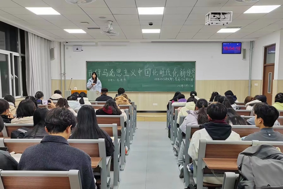 11月13日,tyc234cc太阳成集团共青团于博学楼c区组织开展“开辟马克思主义中国化时代化新境界”为主题的政治理论学习,2023级全体学生参加。