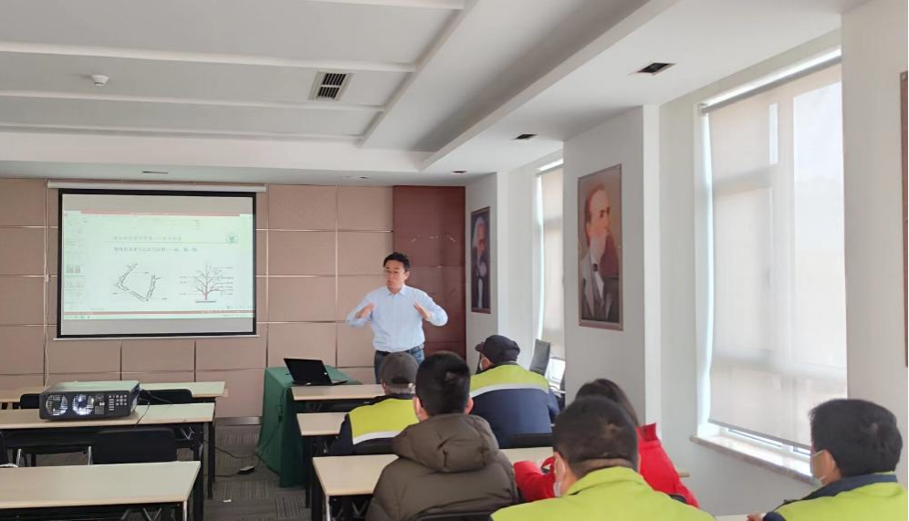 首先,刘庆超教授为世园会的修剪防护工人进行一场理论知识培训,重点讲解园林人应具备的做事态度、修剪的基本方法以及病虫害防治。本次培训的目的在于提高工人们的专业水平和技能,为世园会的绿化管理带来全面提升。