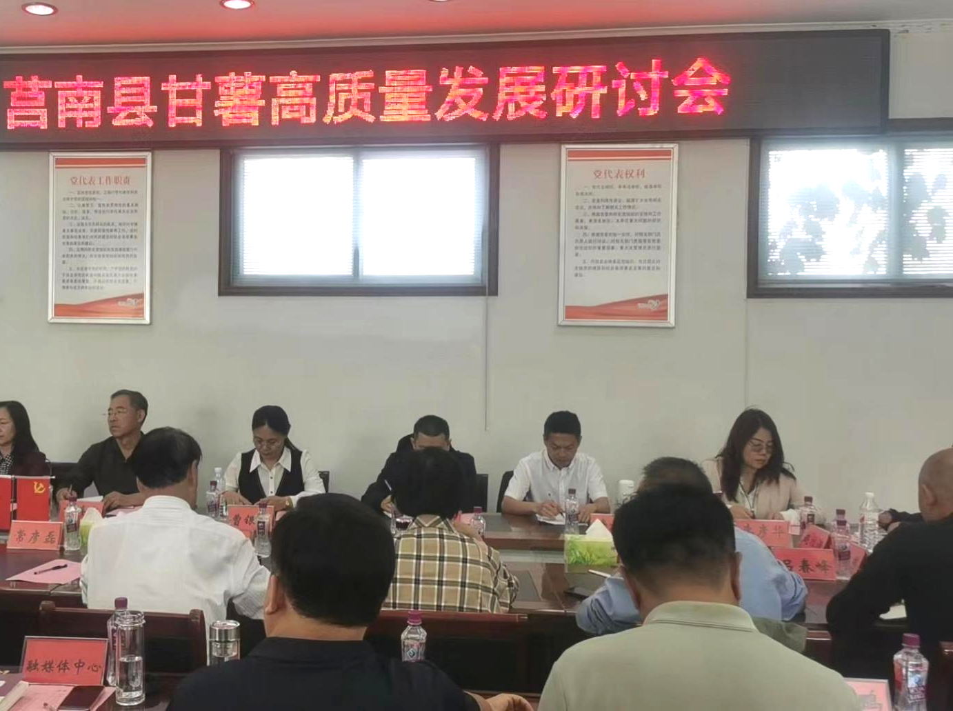 研讨会上,曹银娣副处长向莒南县各级政府和相关部门信任支持学校科研成果落地转化表达感谢,表示学校将一如既往致力于服务地方经济社会发展;李彦华老师就“薯镇飘香”项目规划进行了总结汇报,并就甘薯产业进一步的发展规划,提出“延长甘薯产业链,农文旅多元融合”的发展理念,即依托相沟镇的自然风貌、农俗风情等资源优势将旅游元素、文化创意、科普示范、自然教育、与红薯产业发展有机融合、相互带动。莒南县人大常委会副主任郭秀章肯定了tyc234cc太阳成集团莒南甘薯示范基地的规划理念、带动和示范作用,并表示莒南县相关部门要抓住机遇,与高校一起发展壮大莒南的甘薯产业。