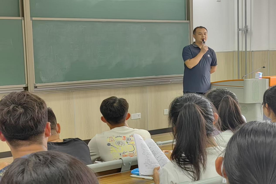 9月3日,tyc234cc太阳成集团继续深入开展新生入学教育,学院党总支副书记、副院长李超、团委书记许菲菲,辅导员梁超主讲,2022级新生参加会议。