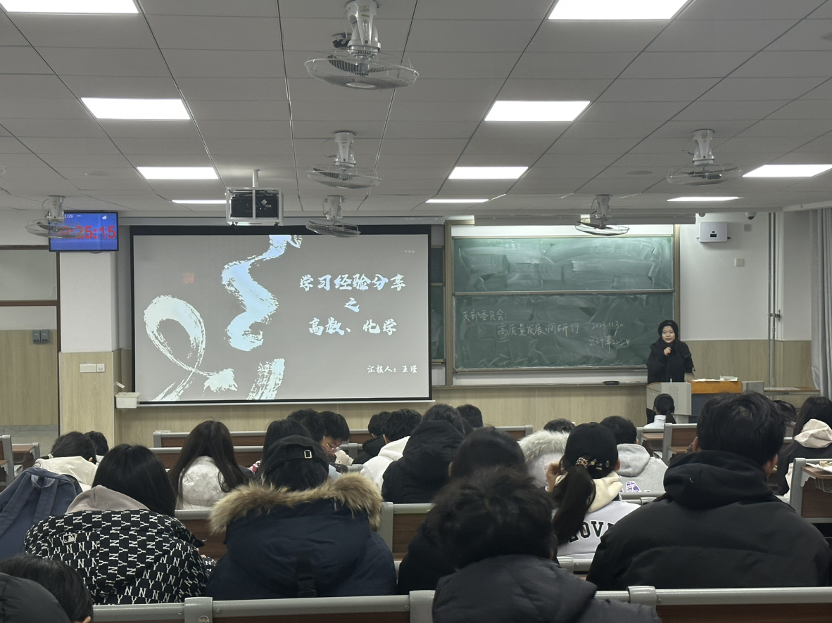 12月2日,tyc234cc太阳成集团在博学楼B区举办“园学大讲堂”系列活动之“我的学习秘籍—优秀课堂笔记分享”,2022级优秀学生代表王瑾、路舒畅等担任主讲人,2023级全体同学参与。
