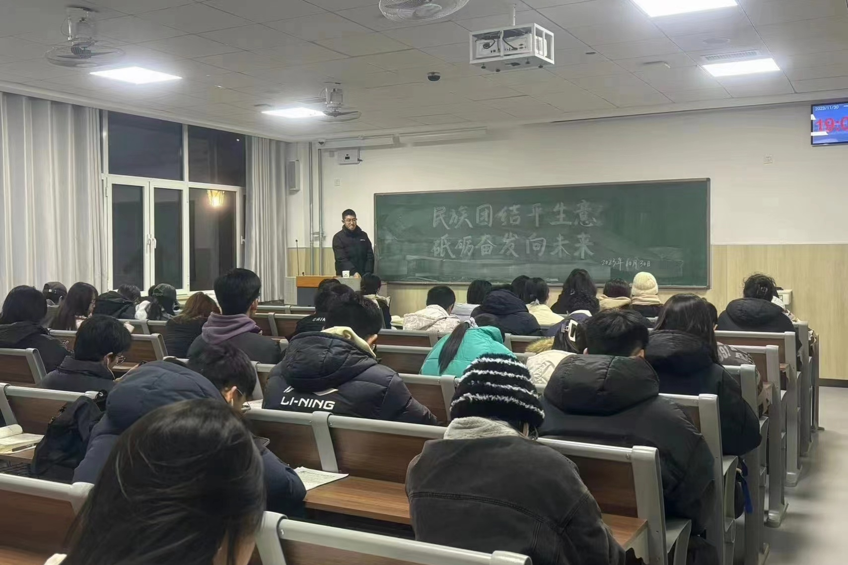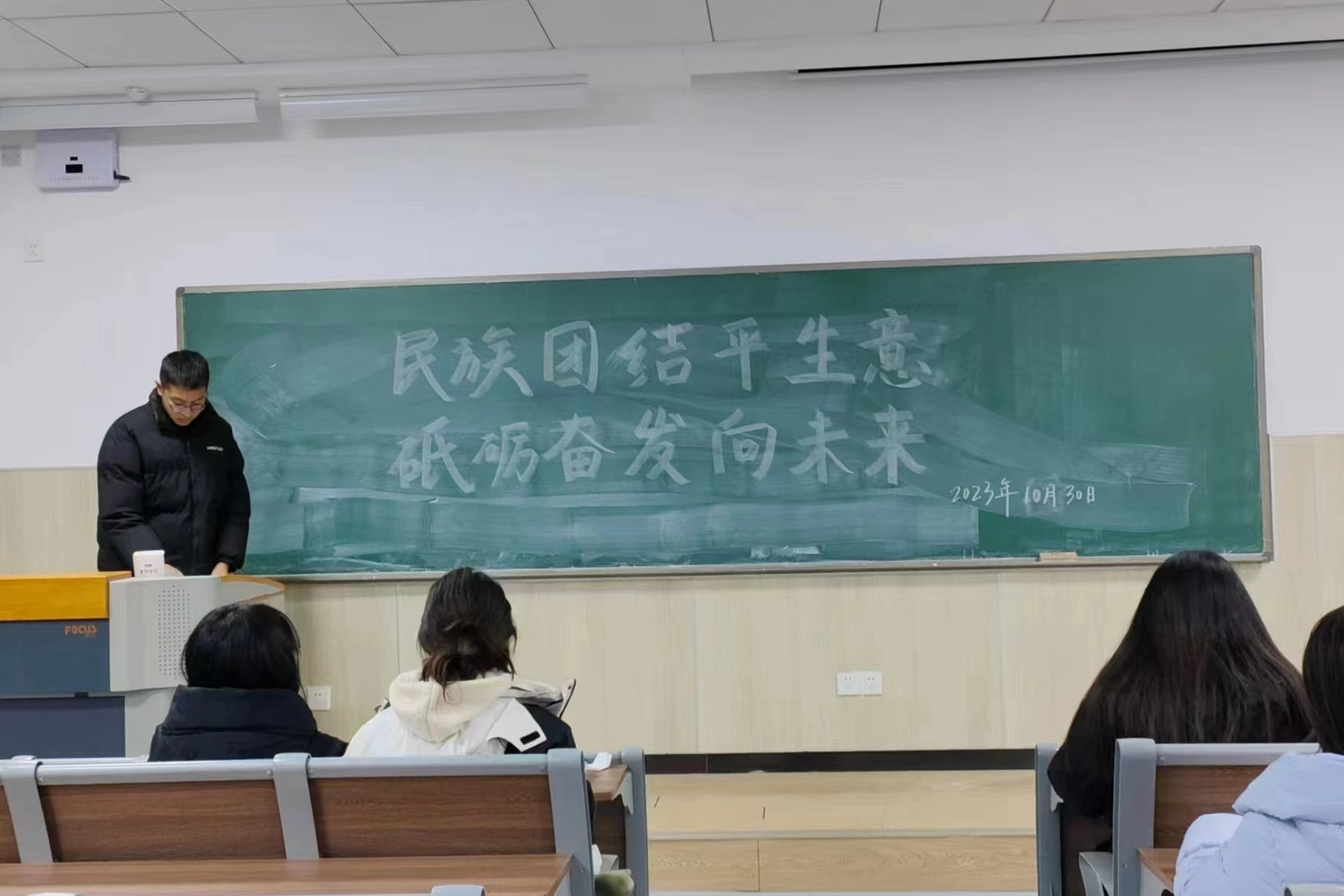 10月30日,tyc234cc太阳成集团于博学楼C区开展以“民族团结平生意,砥砺奋发向未来”为主题的政治理论学习,各班团支部书记担任主讲人,全院团支部参加。