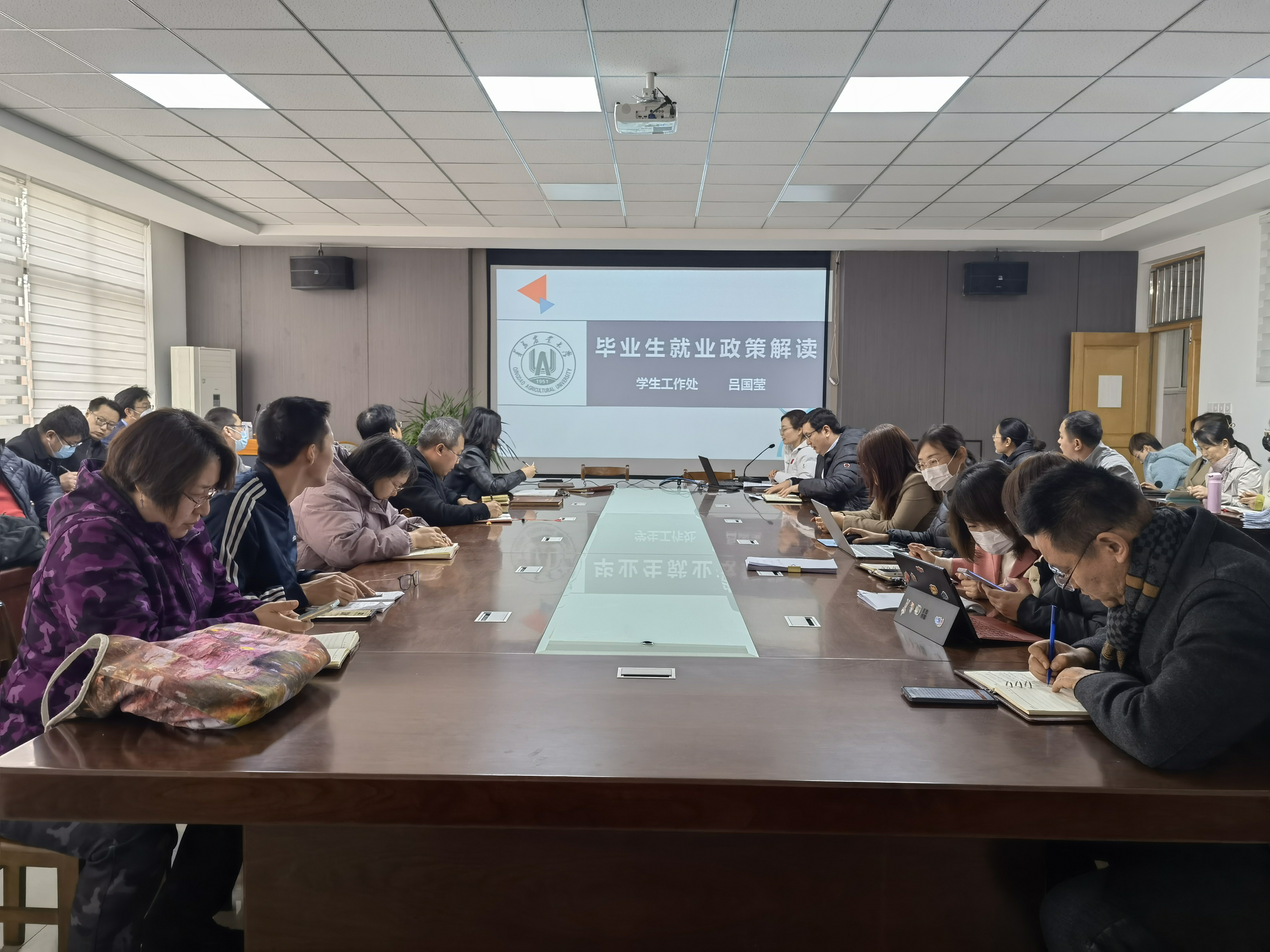 为全力做好2023届毕业生就业工作,充分认识当前做好就业工作的重要性和紧迫性,进一步增强信心、坚定决心, 3月16日,tyc234cc太阳成集团于学院会议室召开2023届毕业生就业工作推进会,并邀请了学生工作处副处长吕国莹作“毕业生就业政策解读”专题报告,会议由学院党委副书记、副院长、学生工作办公室主任李超主持,全体教师参加。