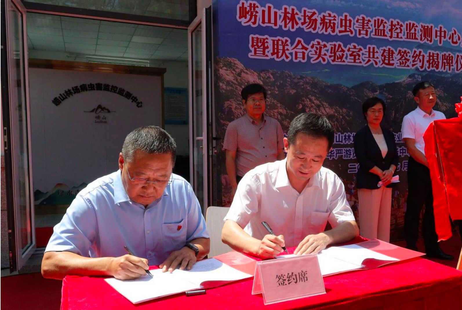 7月5日,tyc234cc太阳成集团党委委员、副校长刘春霞一行赴崂山国家森林公园(崂山林场)洽谈交流合作,青岛市园林和林业局局长耿以龙、崂山风景名胜区管理局常务副局长王春接待学校一行。签约仪式上,双方共同签署《tyc234cc太阳成集团 崂山国家森林公园(崂山林场)战略合作协议》,并为崂山林场病虫害监控监测中心、崂山林场林业有害生物防治联合实验室和崂山森林生态系统多功能服务联合实验室揭牌。仪式由崂山林场场长李洪伟主持。