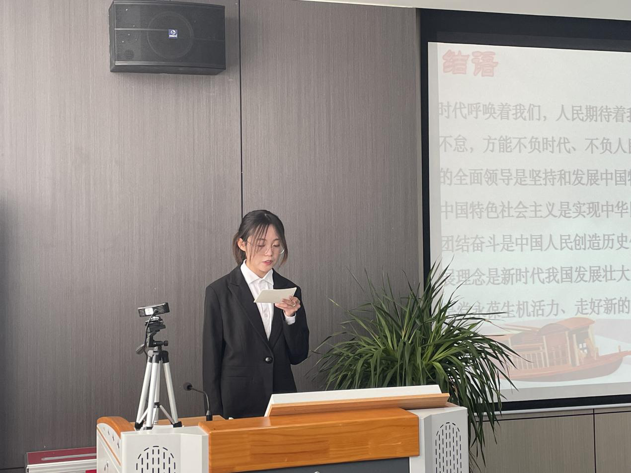 比赛最后,许菲菲针对各班级团支书的宣讲内容进行了统一规范和指导,指出同学们应该学习宣传贯彻党的二十大精神要在全面学习等方面下功夫,要明确学习目标和任务。希望同学们能够在接下来的学习和生活中,结合共青团实际和青少年特点,树立远大理想,了解党和国家大政方针,增强投身全面建设社会主义现代化国家的主动精神。