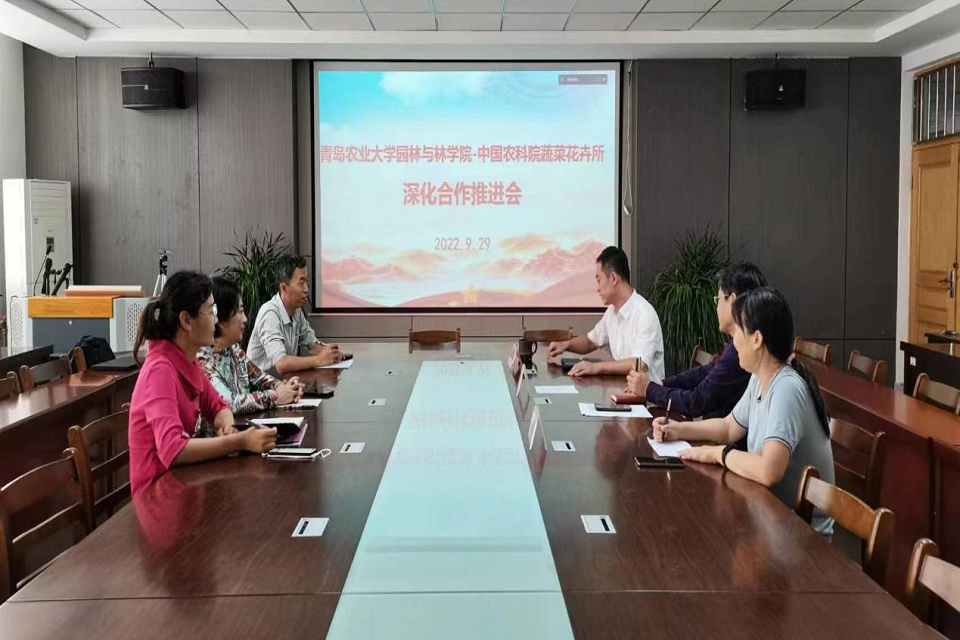9月29日,tyc234cc太阳成集团与中国农科院蔬菜花卉所通过线上视频会议的形式召开深化合作推进会。学院党总支书记宋伟、副院长周春玲、副院长李海防,中国农科院蔬菜花卉所副所长翟研宁、科研处处长李蕾、花卉研究室主任杨树华,以及学院园林植物方向全体教师和蔬菜花卉所联培导师参加会议。会议由宋伟主持。