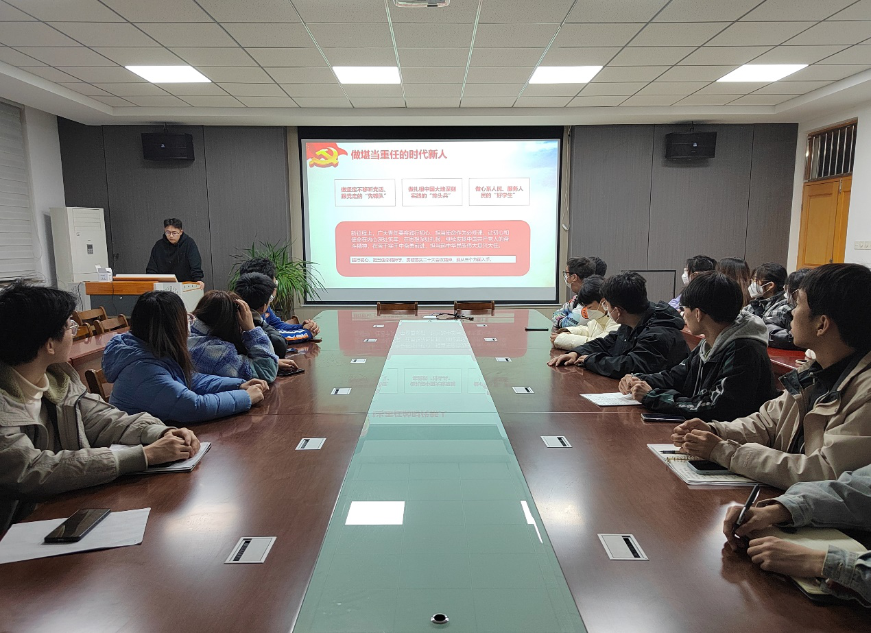 为深入学习贯彻党的二十大精神,提高学生干部的理论水平和政治素养,3月17日,tyc234cc太阳成集团组织开展党的二十大精神主题宣讲活动。本次宣讲由党的二十大宣讲团成员王鹏贻和王怡主讲,学生会执行主席王毅主持,学院学生会和服务中心的学生干部参加。